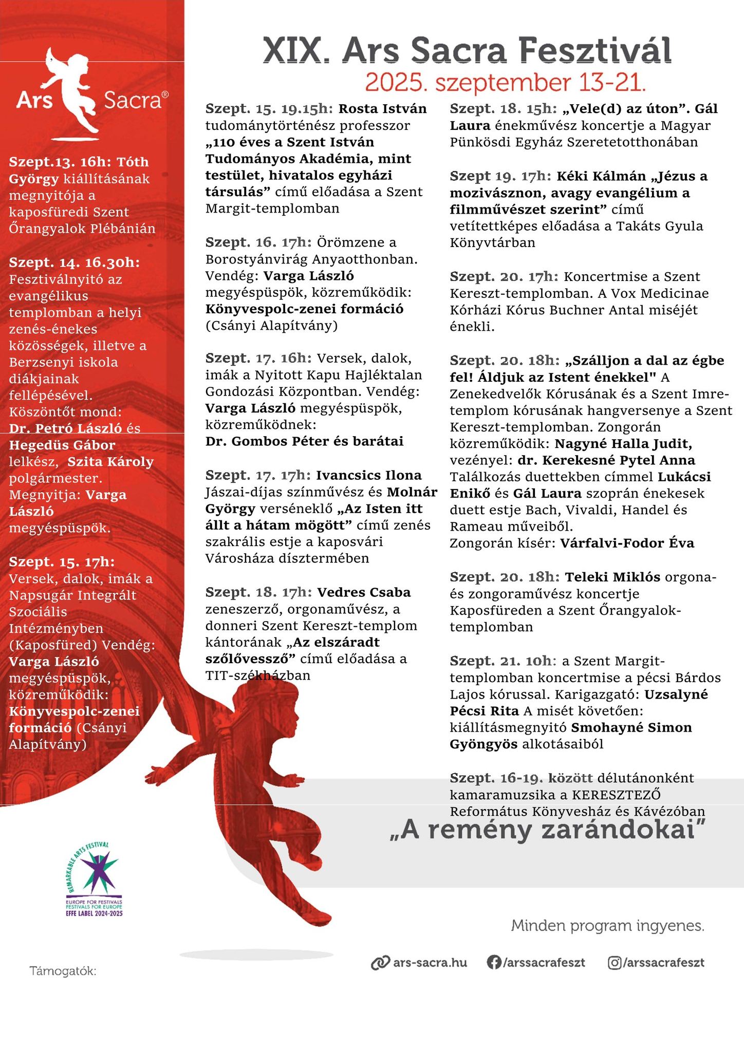 Október 20, este 7 óra, esztergomi belvárosi plébániatemplom (Szent Péter – Szent Pál templom; IV. Béla király u. 3., Poór Antal tér): Csaba és Juli ingyenes Lélektánc-koncertje.